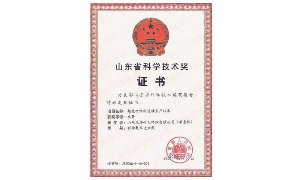 山東省科學技術(shù)獎證書